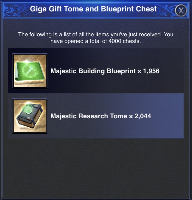 Dazu weder majestätische Beschleuniger noch Diamanten. Ich hatte daher auf die Kisten aus dem Multipler gehofft, aber einzig die Blueprint-Chest gab ein paar Folianten und Entwürfe. Die beiden anderen warfen nur Elite Beschleuniger und Platin ab......
