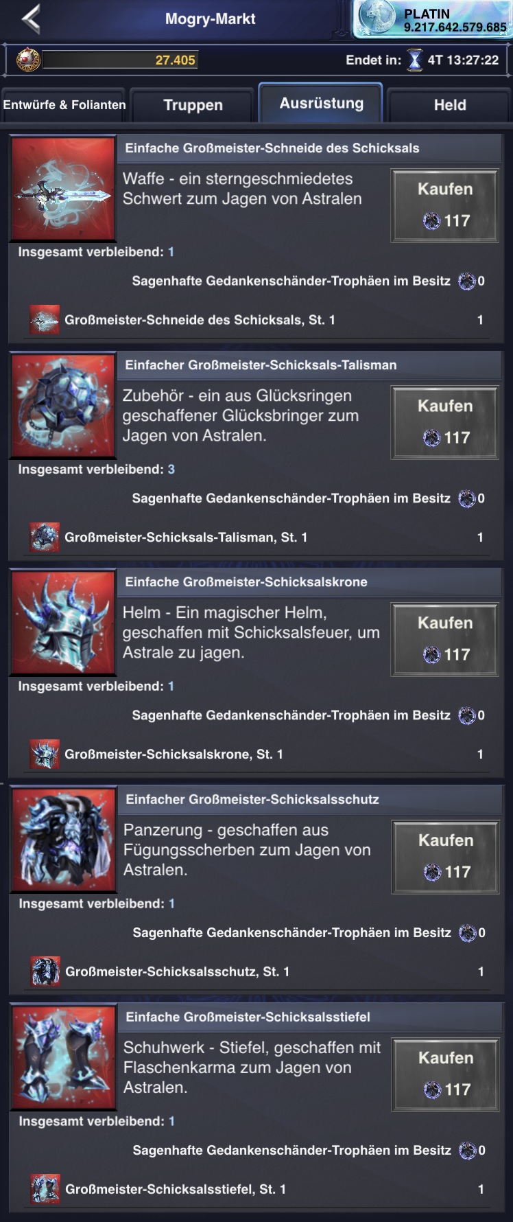Sicherlich war ich etwas "gefrustet" das ich wenig Glück hatte bei dem was ich an Ausrüstungsgegenständen für das Schicksalsset gefunden habe. Aber schlecht war es auch nicht. In der Summe waren es aber trotzdem 3 normale Paket und 5 zum halben Preis .