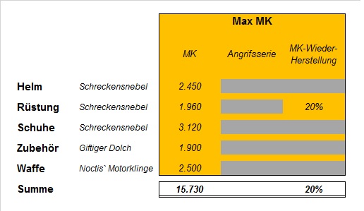 Für die maximale MK gibt es aber noch zwei weitere Gegenstände, welche diese anheben. Und zwar sind das die giftigen Dolche und Noctis Motorklinge.