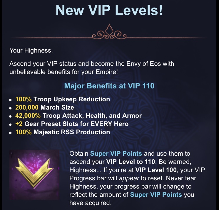 Nachdem in letzter Zeit massig an VIP-Punkten, sowohl in Paketen als auch in Quests rausgehauen wurde, war zu erwarten das sich bald das Limit von 100 ändern würde.