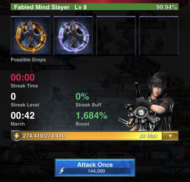 Um diese zu erfüllen, muss Noctis auf Stufe 220 gebracht werden, da erst ab diesem Level "Angriff und LP für alle Kerntruppen" auf Stufe 33 erlernt werden kann.