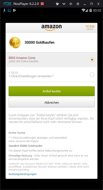 So zahlt man für 10000 Coins rund 80 € ( der Preis schwankt täglich immer etwas ), wobei ein Amazon Coin einem